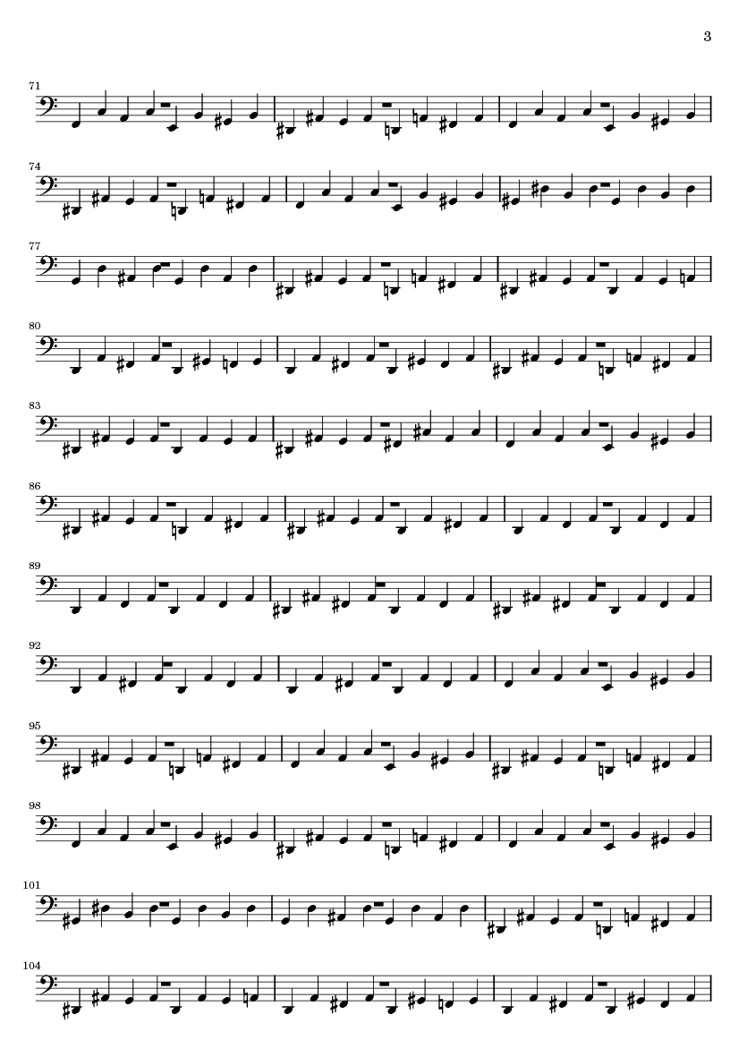 | 1 | | Information Track | | 2 | 15 | Timpani | | 3 | 15 | String Ensemble 1 | | 4 | 15 | SynthBrass 1 | | 5 | 15 | Piccolo | | 6 | 15 | Trombone | | 7 | 15 | Brass Section | | 8 | 15 | Fretless Bass | | 9 | 15 | Drawbar Organ | | 10 | 15 | French Horn | | 11 | 15 | Acoustic Grand | | 12 | 15 | Acoustic Grand | | 13 | 15 | Trumpet | | 14 | 15 | Synth Bass 1 | | 15 | 15 | SynthStrings 1 |
