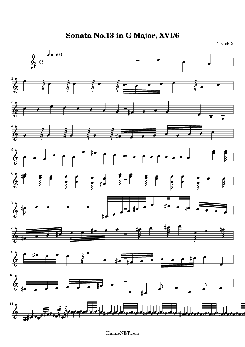 Sonata No.13 in G Major, XVI: 6 > MIDI-Score Track 2