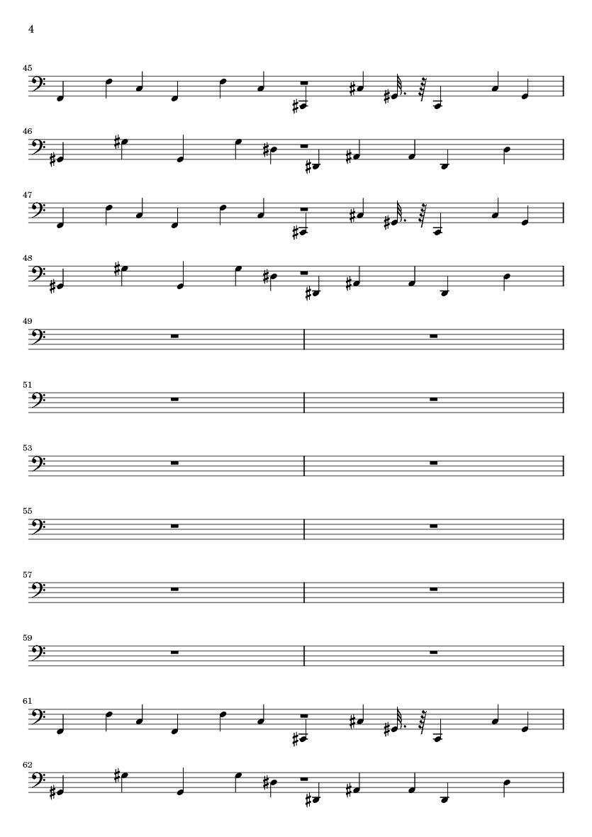 | 1 | | Information Track | | 2 | 1 | Percussive Organ | | 3 | 0 | String Ensemble 2 | | 4 | 3 | Pan Flute | | 5 | 2 | Lead 1 (square) | | 6 | | Information Track | | 7 | | Information Track | | 8 | | Information Track | | 9 | 7 | Fretless Bass | | 10 | 4 | FX 4 (atmosphere) | | 11 | 5 | Trombone | | 12 | 6 | Electric Piano 2 | | 13 | 8 | Acoustic Guitar (nylon) | | 14 | | Information Track | | 15 | 10 | Acoustic Guitar (steel) | | 16 | 11 | Pizzicato Strings | | 17 | | Information Track |