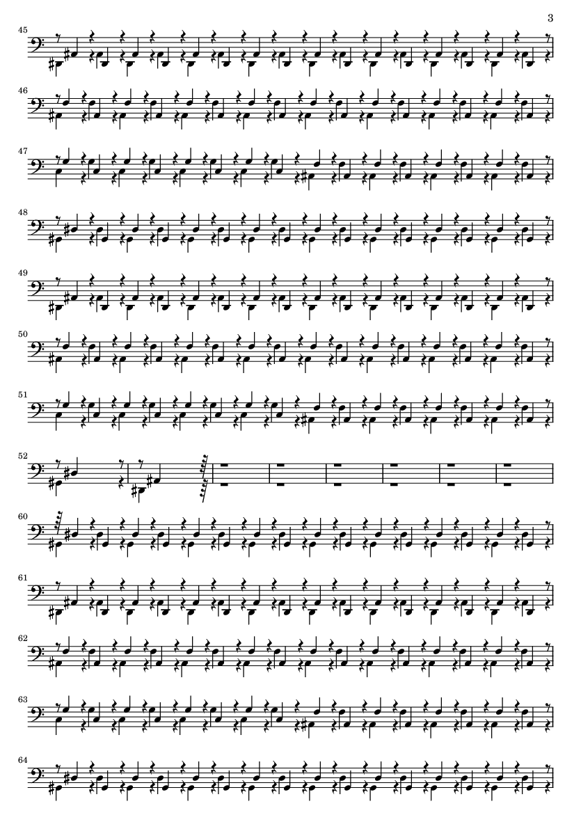 | 1 | 0 | Acoustic Grand | | 2 | 0 | Information Track | | 3 | 2 | Electric Bass (finger) | | 4 | 3 | Distortion Guitar | | 5 | 4 | Clarinet | | 6 | 5 | String Ensemble 1 | | 7 | 6 | String Ensemble 2 | | 8 | 7 | Seashore | | 9 | 8 | FX 6 (goblins) | | 10 | 9 | Unknown | | 11 | 12 | Distortion Guitar | | 12 | 14 | Overdriven Guitar | | 13 | 13 | Distortion Guitar | | 14 | 15 | Overdriven Guitar | | 15 | 16 | SynthBrass 1 | | 16 | 1 | Acoustic Grand | | 17 | 11 | Drawbar Organ | | 18 | 0 | Acoustic Grand | | 19 | 1 | Acoustic Grand | | 20 | 0 | Acoustic Grand | | 21 | 0 | Acoustic Grand | | 22 | 0 | Information Track | | 23 | 0 | Information Track | | 24 | 0 | Information Track |
