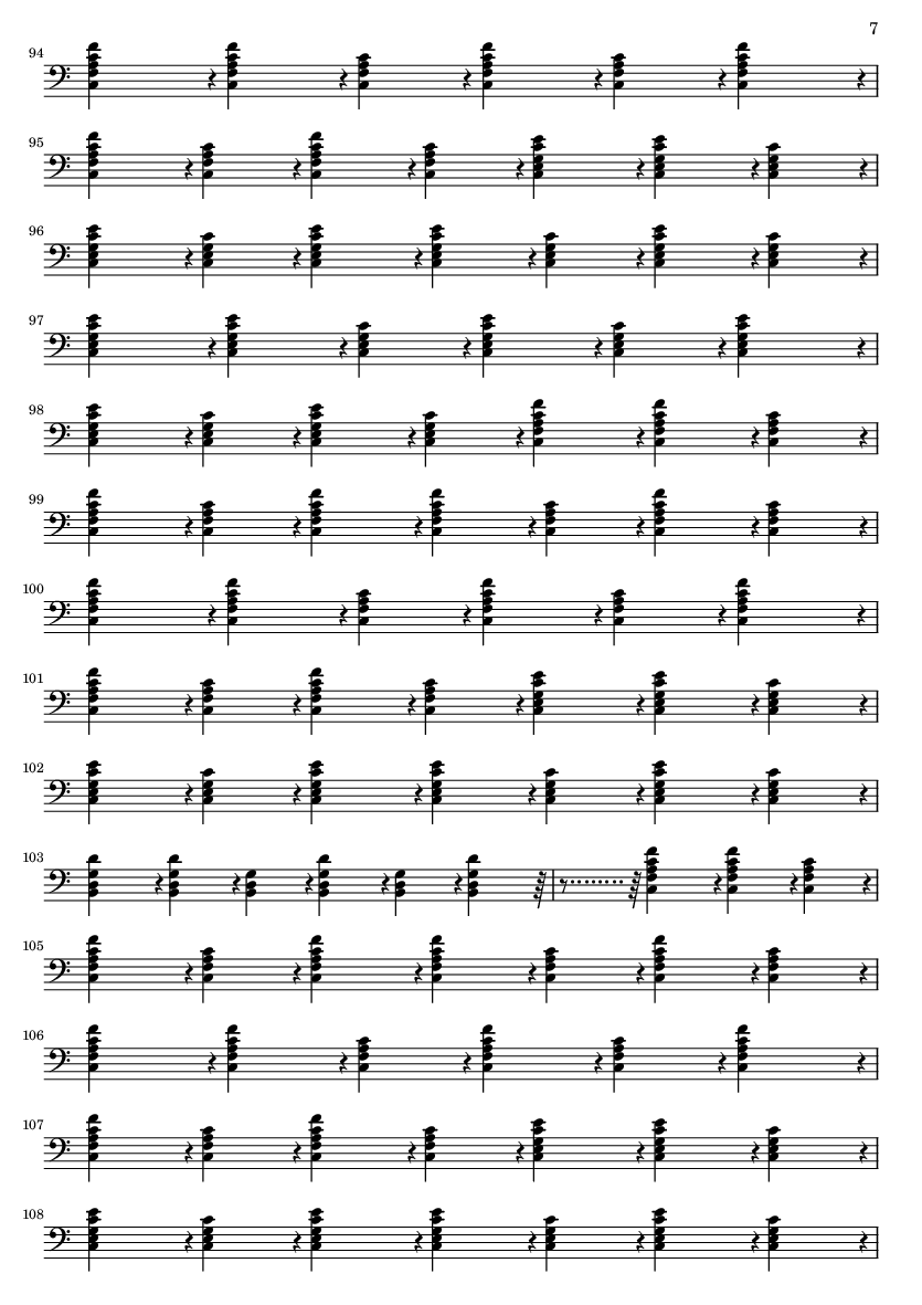 | 1 | 1 | Acoustic Grand | | 2 | 1 | Flute | | 3 | 2 | Choir Aahs | | 4 | 5 | Acoustic Grand | | 5 | 3 | Celesta | | 6 | 9 | Short Guiro | | 7 | 4 | Acoustic Guitar (nylon) | | 8 | 5 | Acoustic Guitar (steel) | | 9 | 8 | Distortion Guitar | | 10 | 15 | Electric Bass (pick) | | 11 | 2 | String Ensemble 1 | | 12 | 6 | Cello | | 13 | 1 | Acoustic Grand | | 14 | 0 | Acoustic Grand |