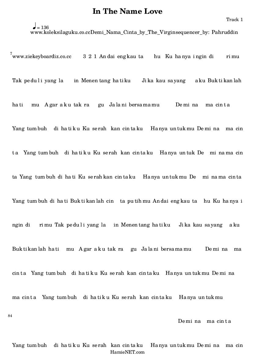 In The Name Love > MIDI-Score Track 1
