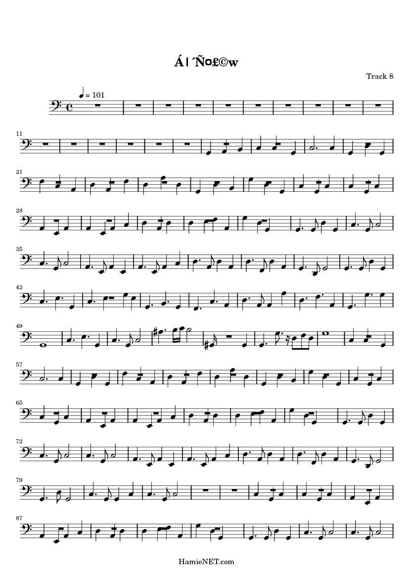 | 1 | | Information Track | | 2 | 0 | Tubular Bells | | 3 | 1 | Tango Accordian | | 4 | 2 | Violin | | 5 | 3 | Electric Piano 2 | | 6 | | Information Track | | 7 | 5 | Harpsichord | | 8 | 4 | Acoustic Bass |