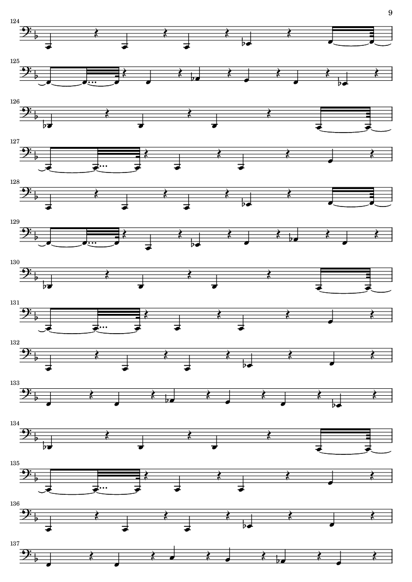 | 1 | 3 | Alto Sax | | 2 | 4 | Alto Sax | | 3 | 5 | Tenor Sax | | 4 | 6 | Tenor Sax | | 5 | 7 | Baritone Sax | | 6 | 9 | Ride Cymbal 2 | | 7 | 12 | Muted Trumpet | | 8 | 14 | Muted Trumpet | | 9 | 16 | Muted Trumpet | | 10 | 1 | Trombone | | 11 | 2 | Trombone | | 12 | 3 | Trombone | | 13 | 4 | Trombone | | 14 | 5 | Electric Guitar (clean) | | 15 | 11 | Slap Bass 2 | | 16 | 1 | Electric Grand | | 17 | 10 | String Ensemble 1 | | 18 | 10 | String Ensemble 1 | | 19 | 1 | Acoustic Grand | | 20 | 1 | Acoustic Grand | | 21 | 0 | Acoustic Grand | | 22 | 1 | Bright Acoustic | | 23 | 0 | Acoustic Grand | | 24 | 1 | Electric Grand | | 25 | 0 | Acoustic Grand | | 26 | 1 | Honky-Tonk | | 27 | 0 | Acoustic Grand | | 28 | 1 | Electric Piano 1 | | 29 | 0 | Acoustic Grand | | 30 | 0 | Acoustic Grand |