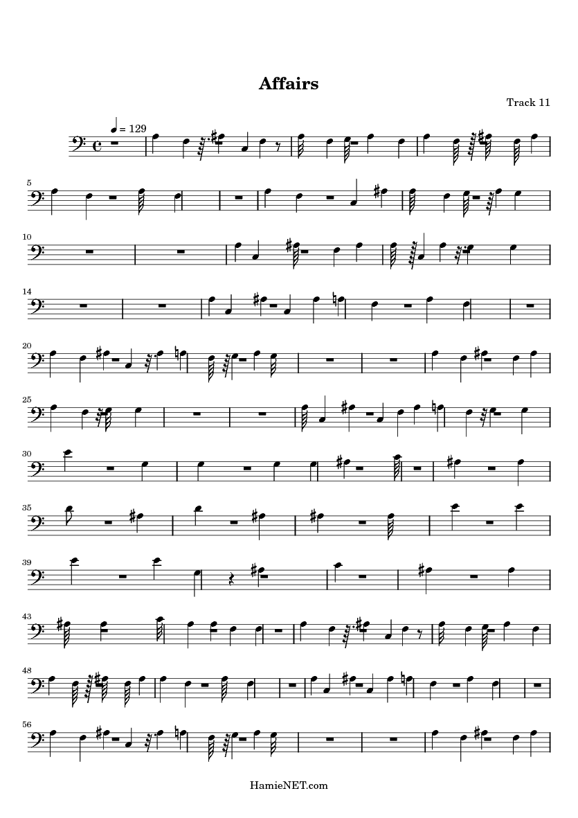 | 1 | | Information Track | | 2 | | Information Track | | 3 | | Information Track | | 4 | 0 | French Horn | | 5 | | Information Track | | 6 | 1 | Electric Bass (finger) | | 7 | 2 | FX 5 (brightness) | | 8 | 3 | Lead 2 (sawtooth) | | 9 | 4 | Acoustic Guitar (steel) | | 10 | 5 | Distortion Guitar | | 11 | 6 | Electric Guitar (clean) | | 12 | 7 | Overdriven Guitar | | 13 | 8 | Electric Guitar (muted) | | 14 | 10 | Electric Guitar (jazz) | | 15 | 11 | Choir Aahs | | 16 | 12 | Woodblock |