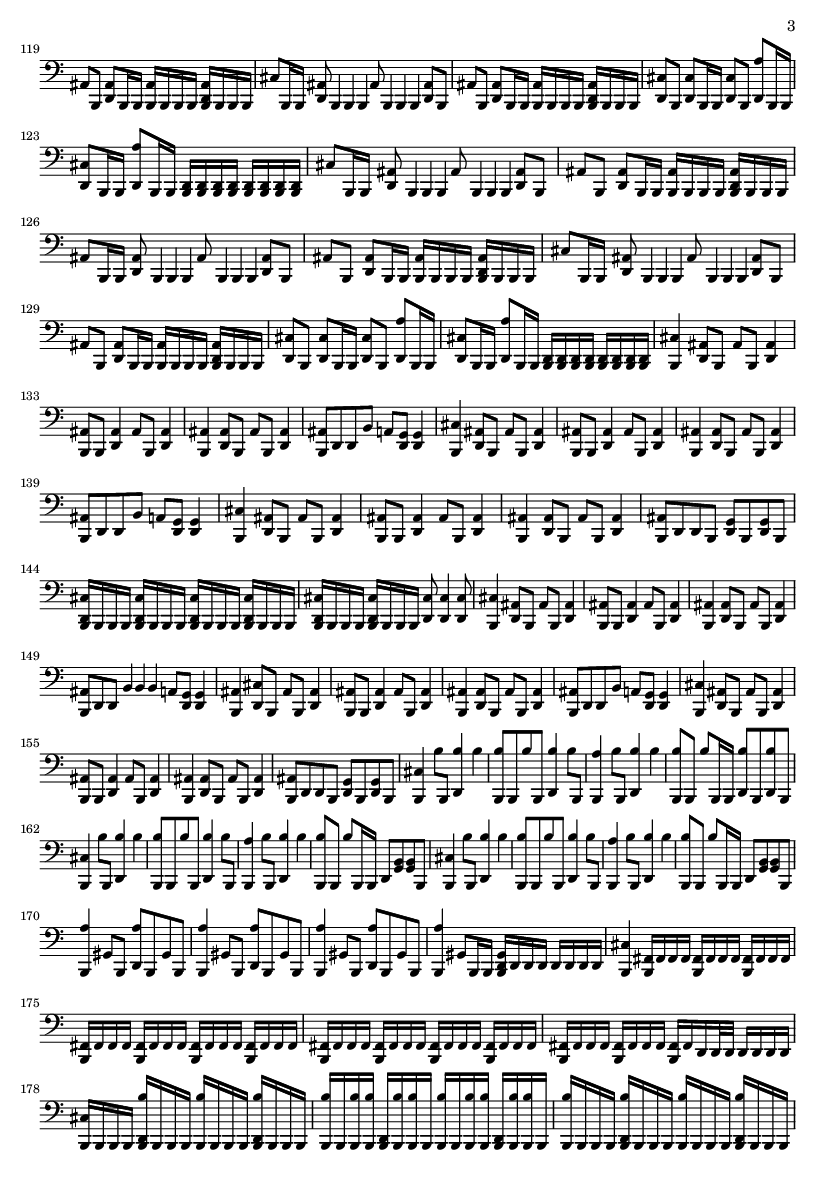 | 1 | 2 | String Ensemble 1 | | 2 | 2 | String Ensemble 1 | | 3 | 9 | Unknown | | 4 | 3 | Distortion Guitar | | 5 | 4 | Distortion Guitar | | 6 | 5 | Distortion Guitar | | 7 | 6 | Distortion Guitar | | 8 | 5 | Distortion Guitar | | 9 | 6 | Distortion Guitar | | 10 | 7 | Distortion Guitar | | 11 | 8 | Electric Bass (pick) | | 12 | 12 | Clarinet | | 13 | 14 | Clarinet | | 14 | 16 | English Horn | | 15 | 1 | Information Track | | 16 | 1 | Information Track | | 17 | 0 | Acoustic Grand |