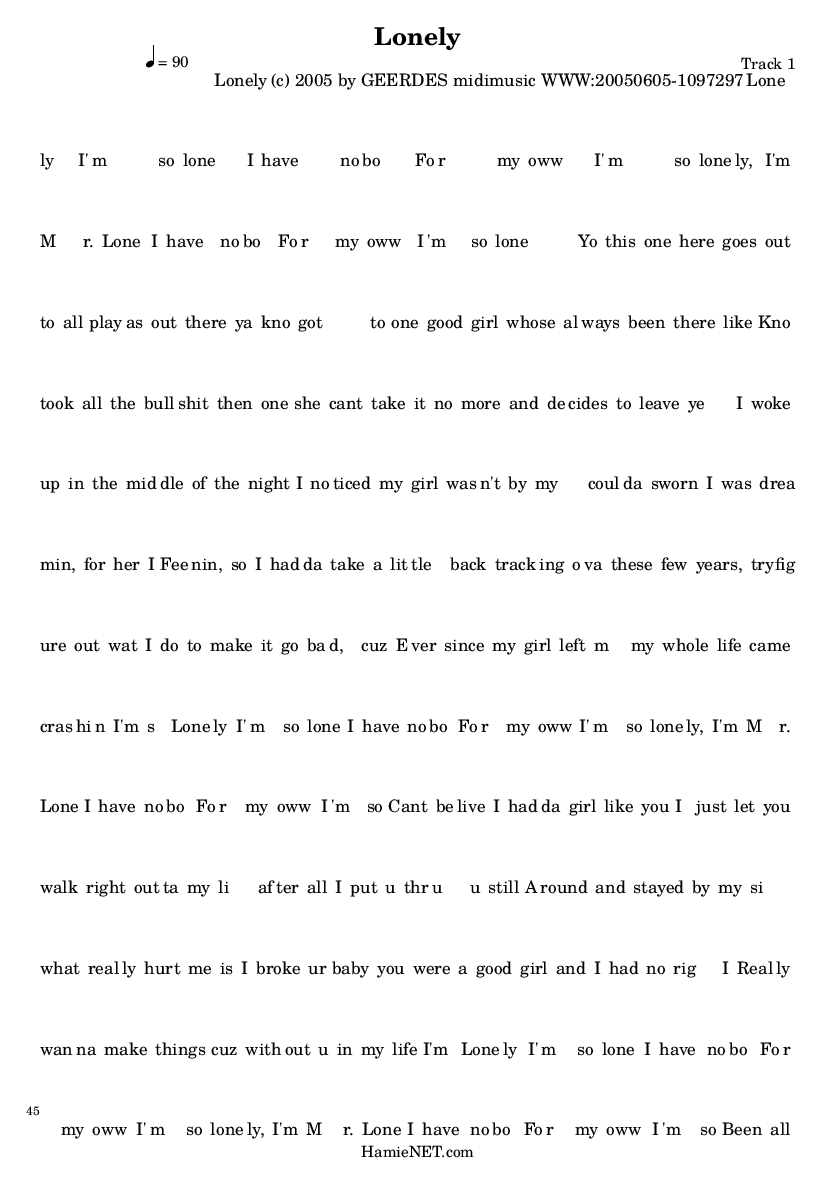 Lonely > MIDI-Score Track 1