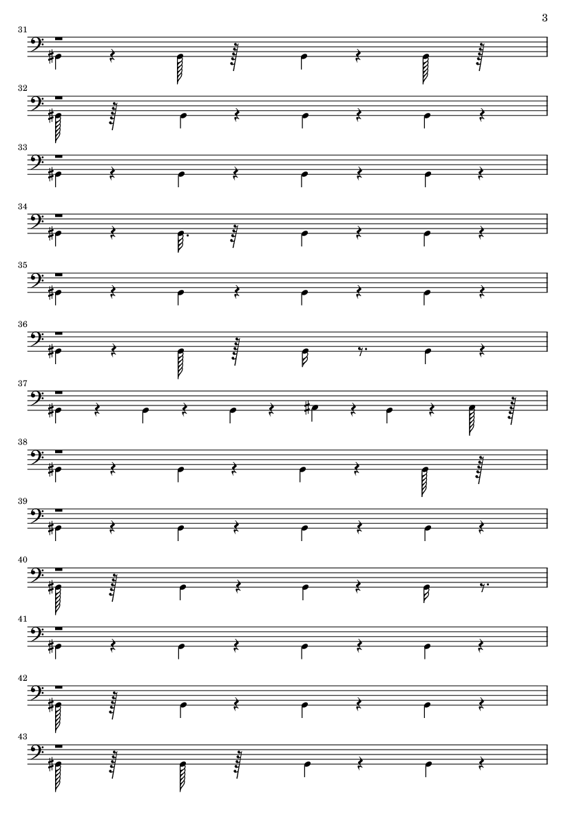| 1 | 1 | Information Track | | 2 | 10 | Acoustic Bass | | 3 | 1 | Acoustic Grand | | 4 | 1 | Acoustic Grand | | 5 | 1 | Acoustic Grand | | 6 | 12 | Electric Bass (finger) | | 7 | 11 | Overdriven Guitar | | 8 | 8 | Distortion Guitar | | 9 | 13 | Pad 8 (sweep) | | 10 | 14 | SynthStrings 2 | | 11 | 15 | SynthStrings 2 | | 12 | 7 | FX 7 (echoes) | | 13 | 16 | Lead 8 (bass + lead) | | 14 | 3 | Lead 8 (bass + lead) | | 15 | 9 | Unknown | | 16 | 9 | Unknown | | 17 | 9 | Unknown | | 18 | 6 | Information Track | | 19 | 5 | Clav | | 20 | 4 | Clav | | 21 | 1 | Seashore | | 22 | 2 | Information Track | | 23 | 0 | Acoustic Grand |